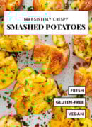 These smashed potatoes are baked to crispy perfection! You’re going to love this smashed potatoes recipe, which is both vegan and gluten free. Recipe yields 4 side servings.