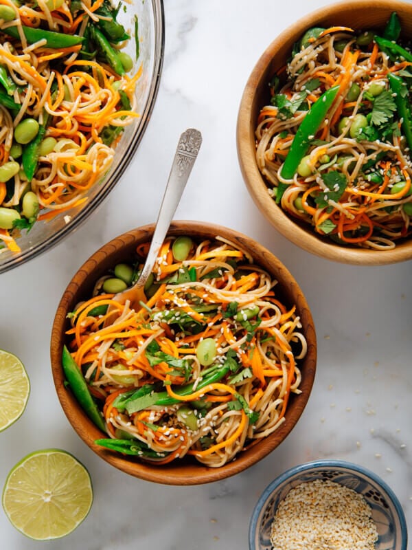 Almond sesame soba noodles with zucchini noodles - cookieandkate.com