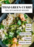 *Green curry paste: Look for it in the Asian section of the grocery store. I like Thai Kitchen brand. Not all Thai curry pastes are vegetarian, but this one is.