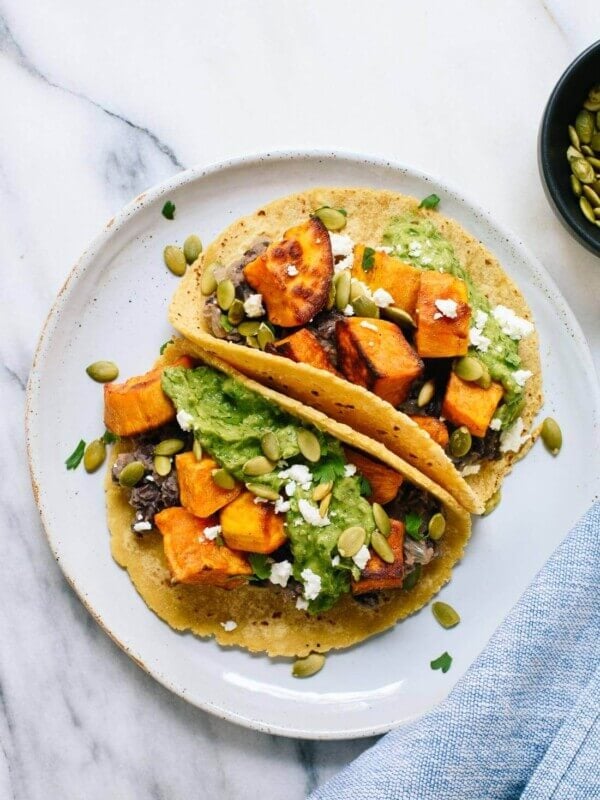 Sweet Potato & Black Bean Tacos with Avocado Pepita Dip